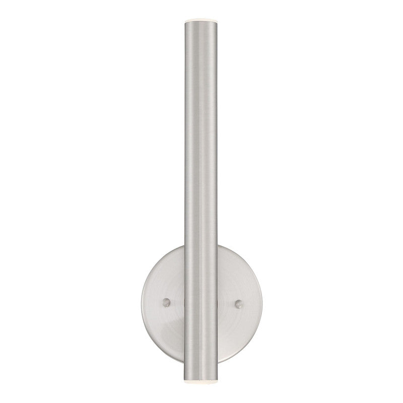 Full of modern elegance, this one-light wall light is sleek and stylish. Brushed nickel radiates against the clean lines of the frame, while the dimmable glow is perfect for any living area.