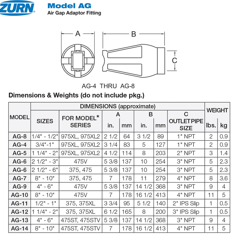 Zurn AG-5 - 1-1/4" to 2" Air Gap Adaptor Fitting