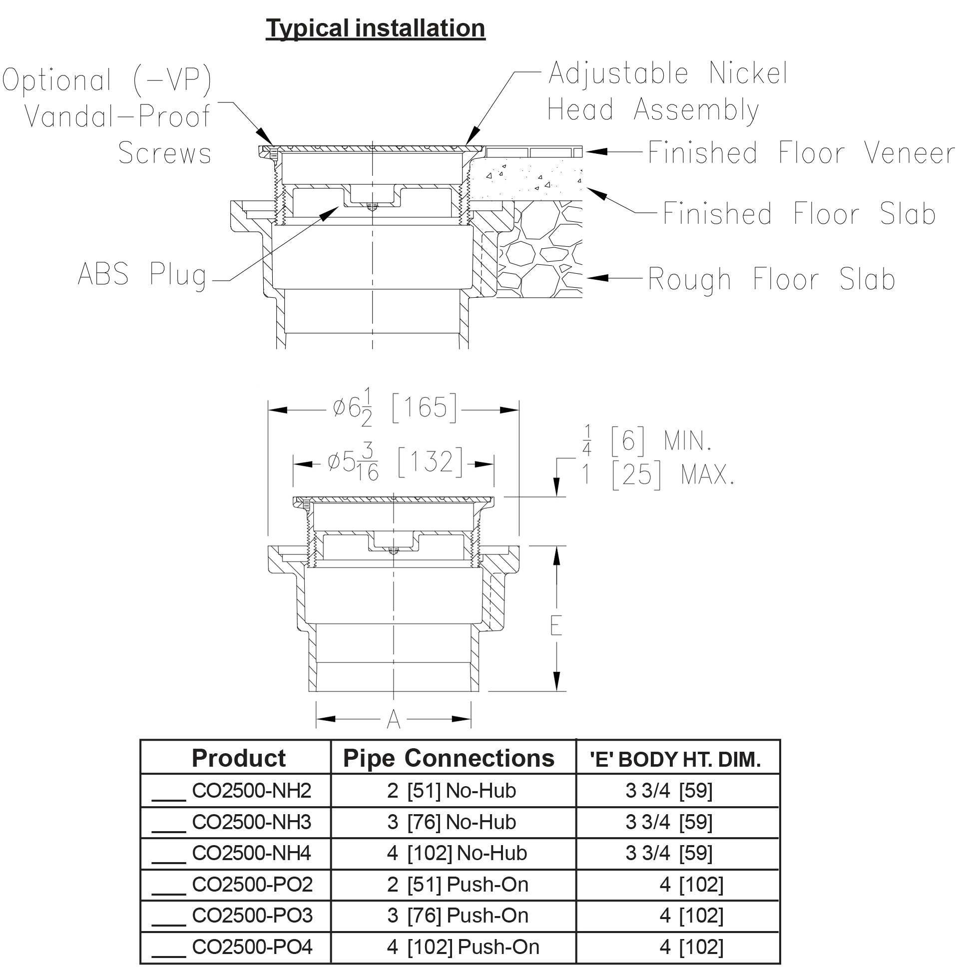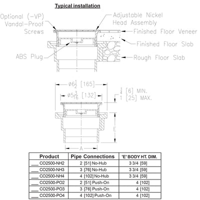 The cast iron body comes complete with a nickel, scoriated adjustable head. This cleanout is designed to easily adapt to either cast iron or plastic pipe.